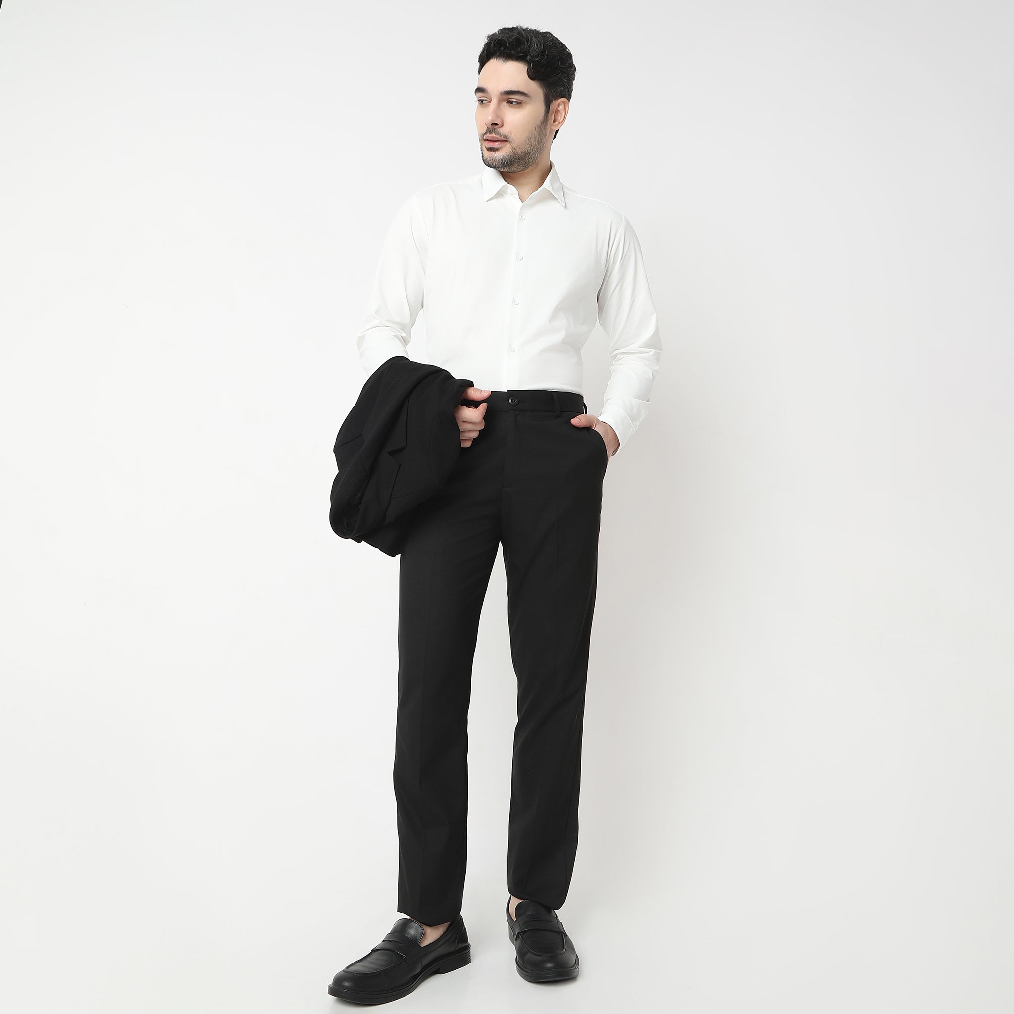Black pants create a sharp, powerful, and timeless look with a white shirt. This combination is ideal for office wear, boardroom meetings, and formal evening events.