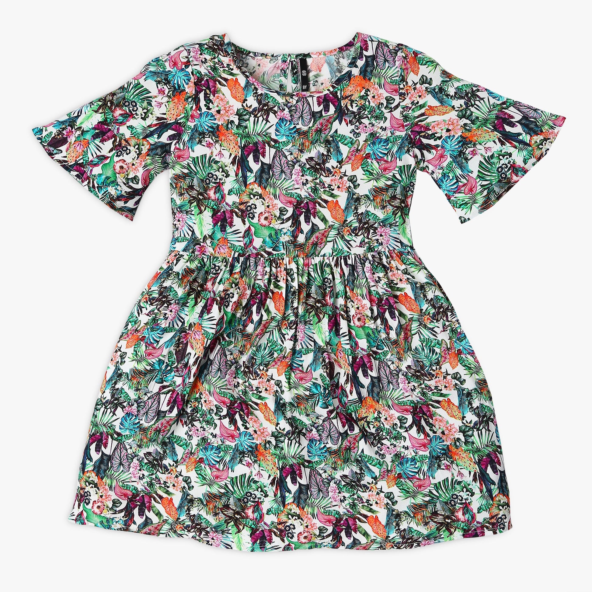 This dress has a round neck and short sleeve. Made from viscose, your kid's feel comfortable wearing a product.