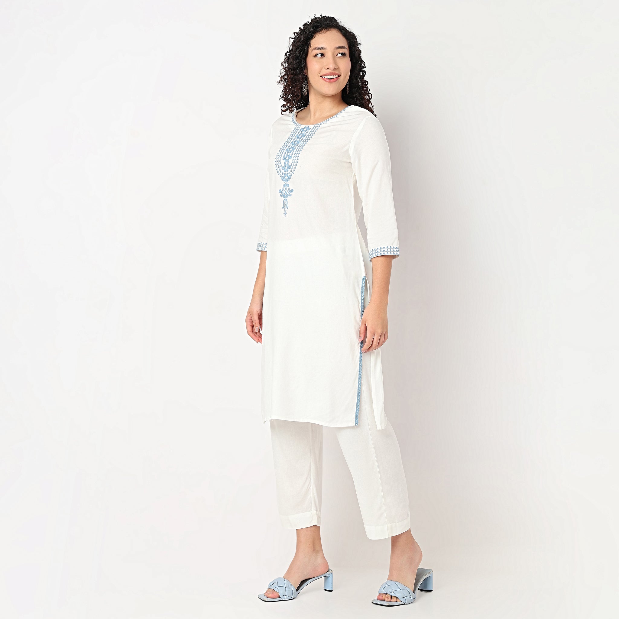 Experience the perfect blend of elegance and comfort with our Embroidered Kurta Pant Set. Crafted from 100% Rayon, this set offers a soft, breathable feel that keeps you comfortable all day long. The intricate embroidery adds a touch of sophistication, making it ideal for both casual outings and festive occasions. The below-knee length and straight fit provide a flattering silhouette that suits all body types.