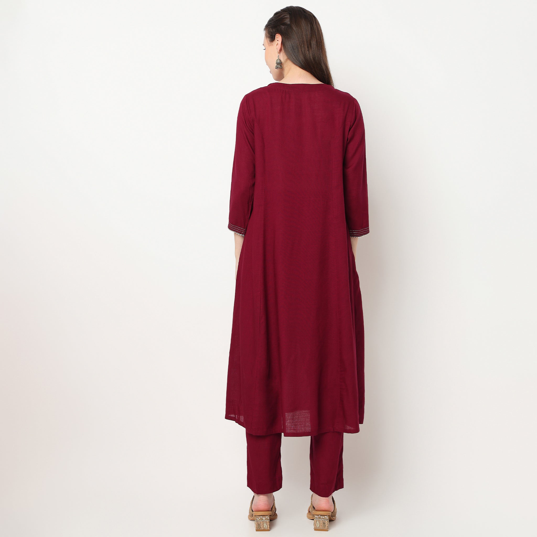 Embroidered V-Neck Kalidar Kurta with Pant Set