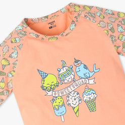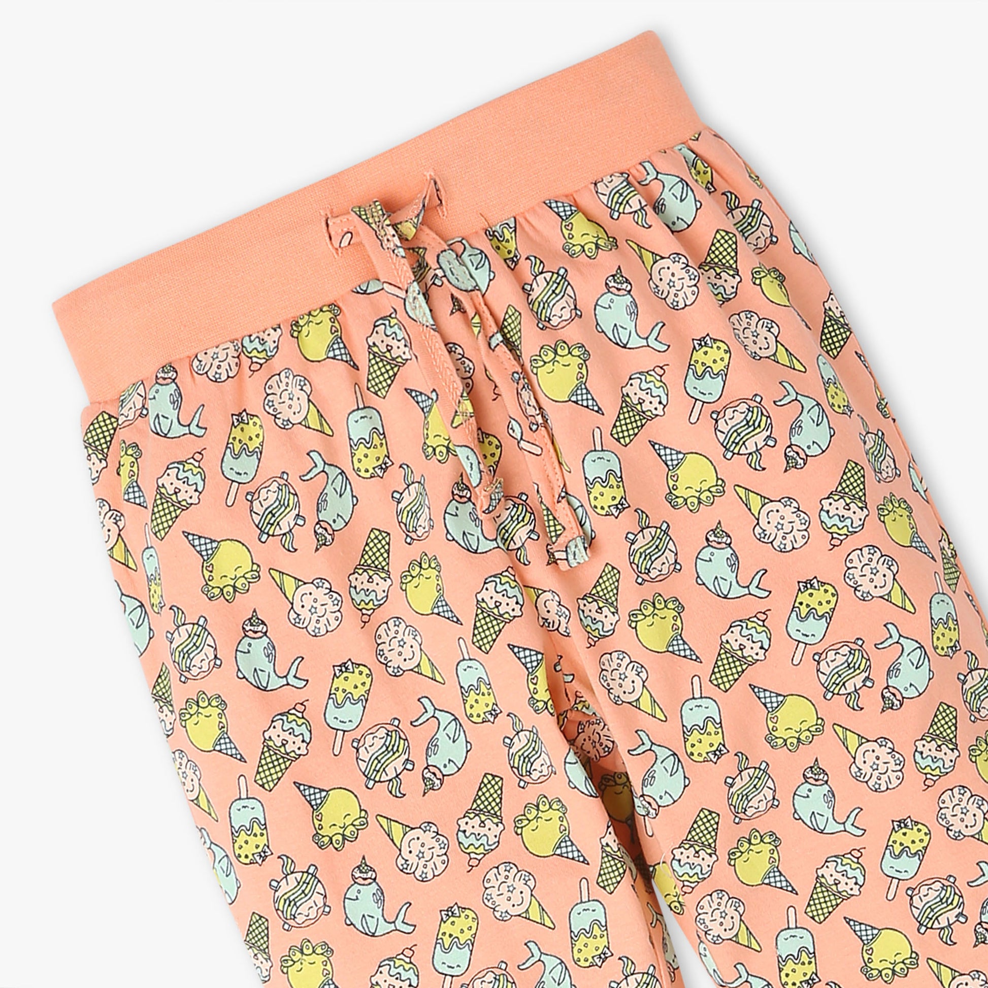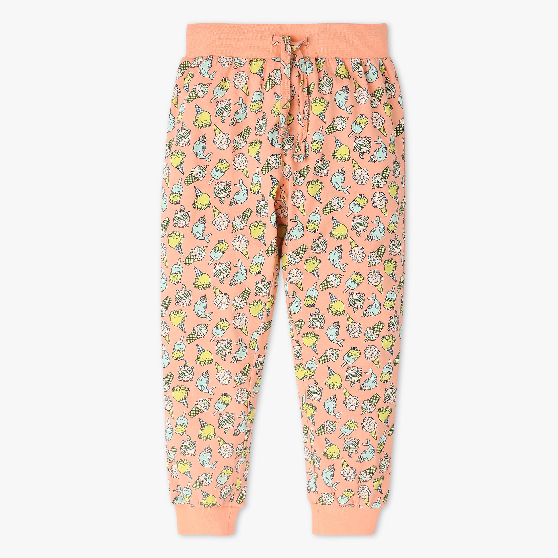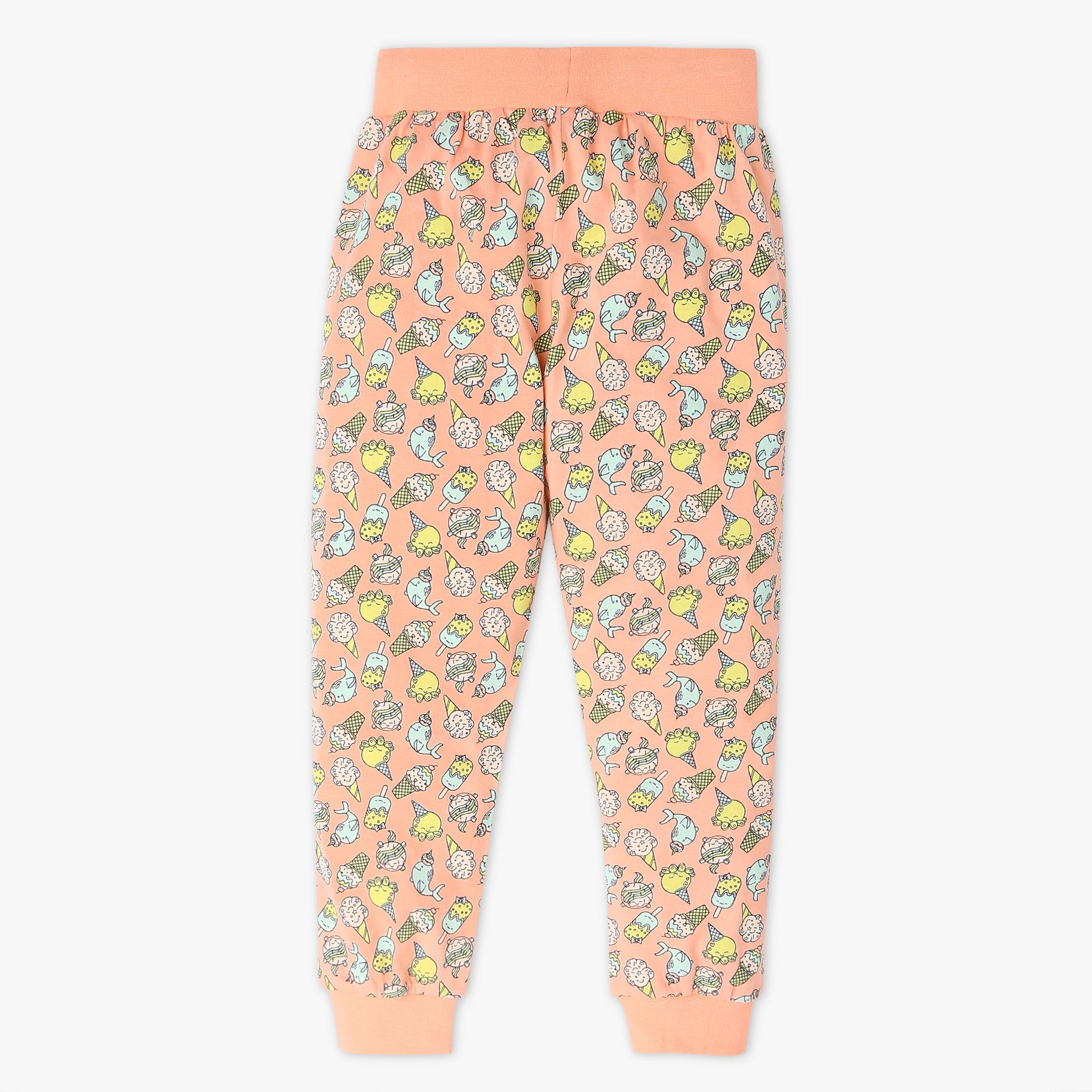 Girls "Must Have Snooze Coordinate Set. Refreshing Graphic T-Shirt With Matching Pattern Printed Trackpant. Comfortable Body For Ease. Breathable And Absorbent 100% Cotton Single Jersey Fabric."