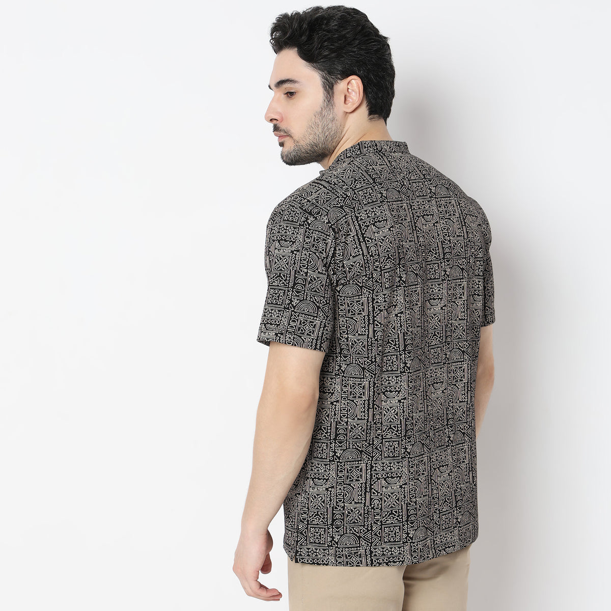 Printed Half Sleeve Mandarin Collar Knit Short Kurta