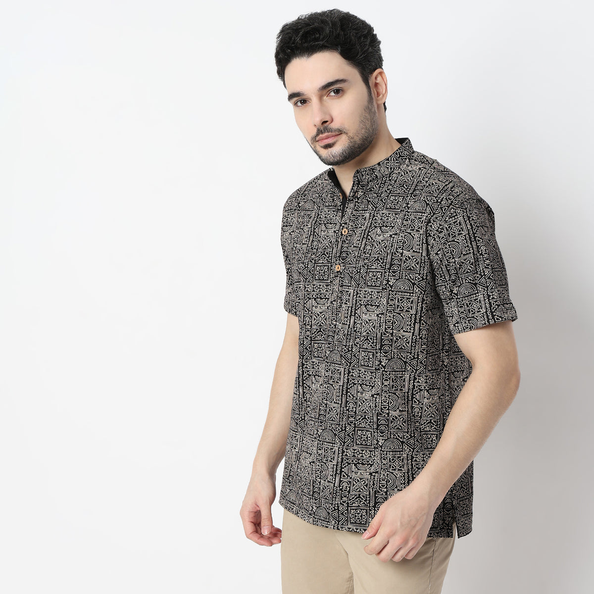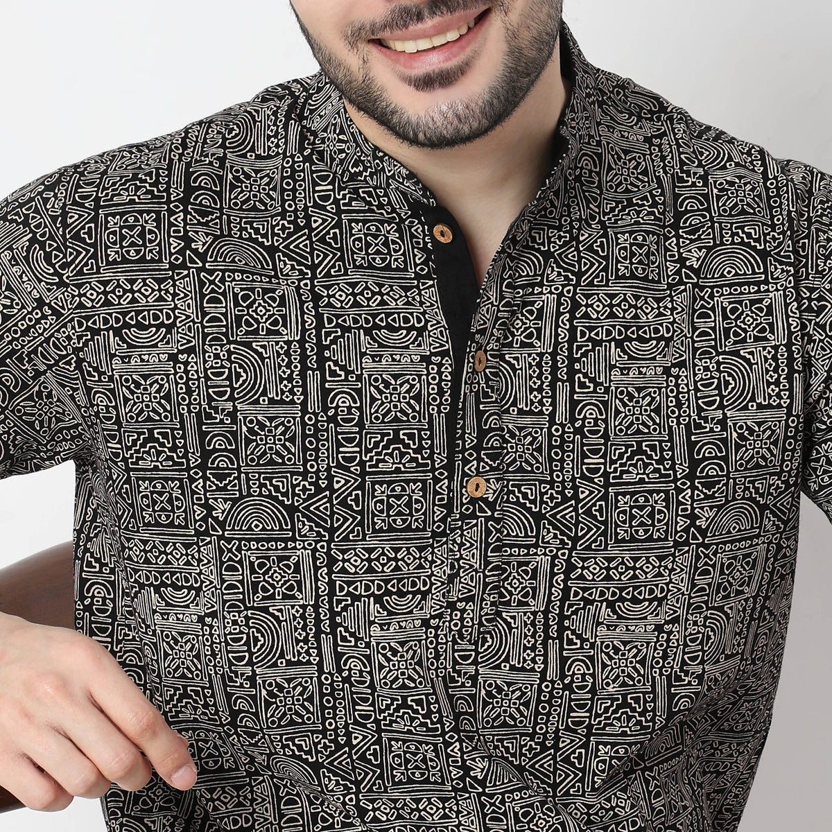 Experience the perfect blend of tradition and modernity with this Printed Half Sleeve Mandarin Collar Artistry Knit Short Kurta. Crafted from 100% cotton, this kurta promises unmatched comfort and breathability, making it an ideal choice for any occasion. The intricate print adds a touch of elegance, ensuring you stand out in any crowd.