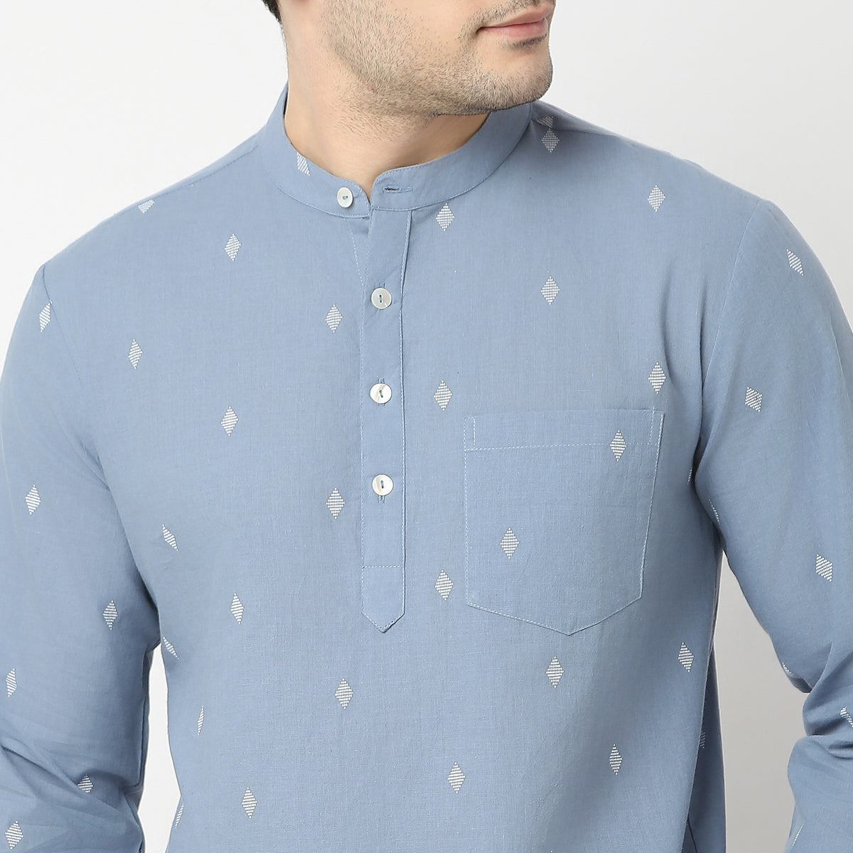 This jacquard pattern kurta has a mandarin collar and full sleeve. Made from cotton, it is soft and comfortable to wear.