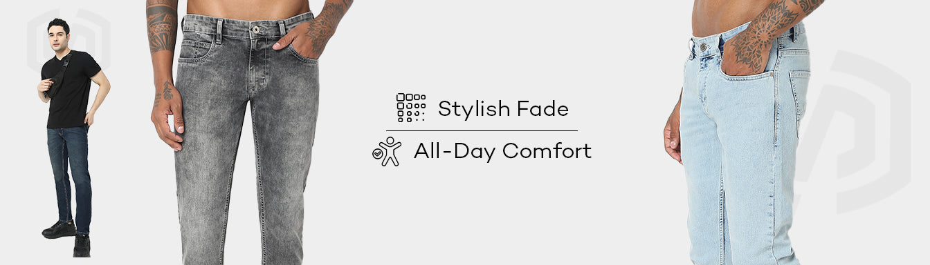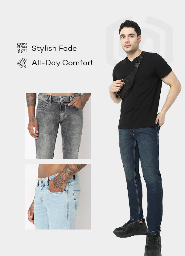 These fade acid pattern tapered fit jeans has crop length, mid rise waist. Made from cotton polyester, enabling maximum comfort.