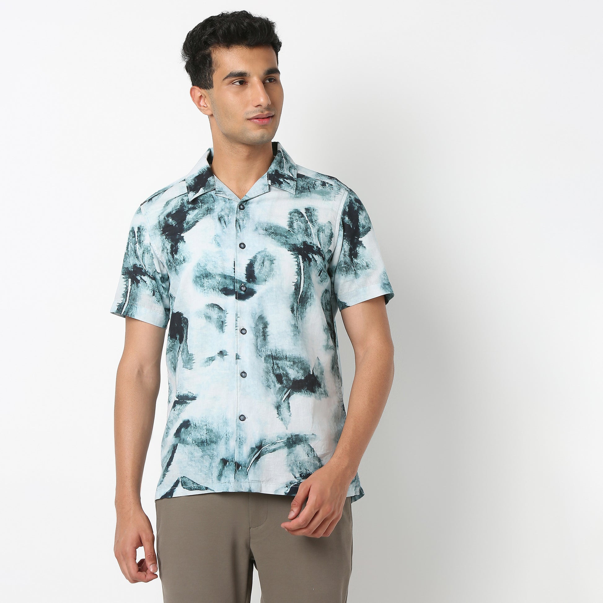 Step into laid-back style with this printed half-sleeve casual Shirt, crafted from a fine blend Natural Fibers Linen and Cotton for an airy, breathable feel.