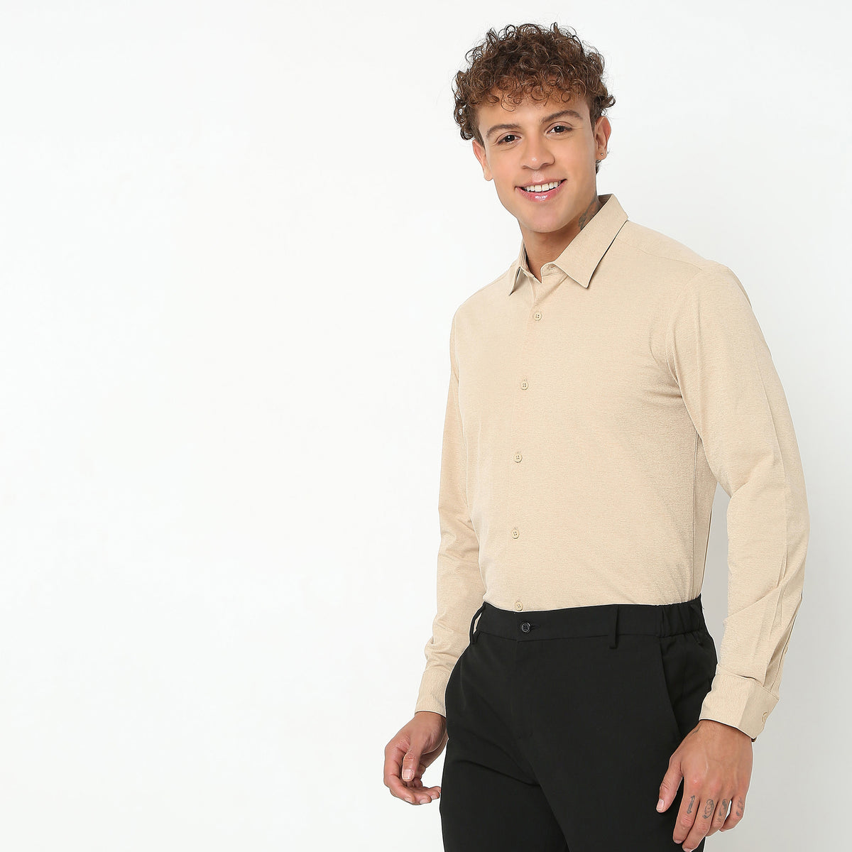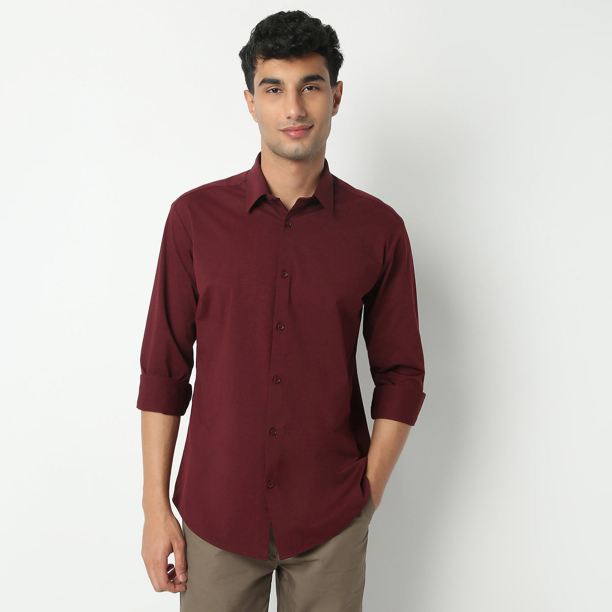 The "ZERO TOP STITICH" shirt collar adds an elegant touch suitable for both formal and smart-casual occasions. Designed with full sleeves for versatility, it's a great choice for any season. Its regular length ensures a polished look whether tucked in or worn out, effortlessly pairing/