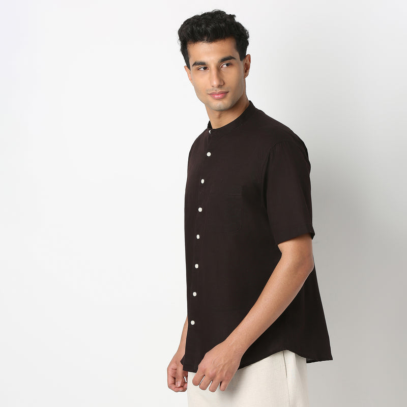 Structured Camp Collar Modern Half Sleeve Smart Cuban Shirt