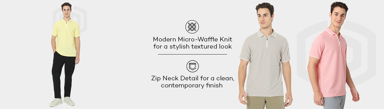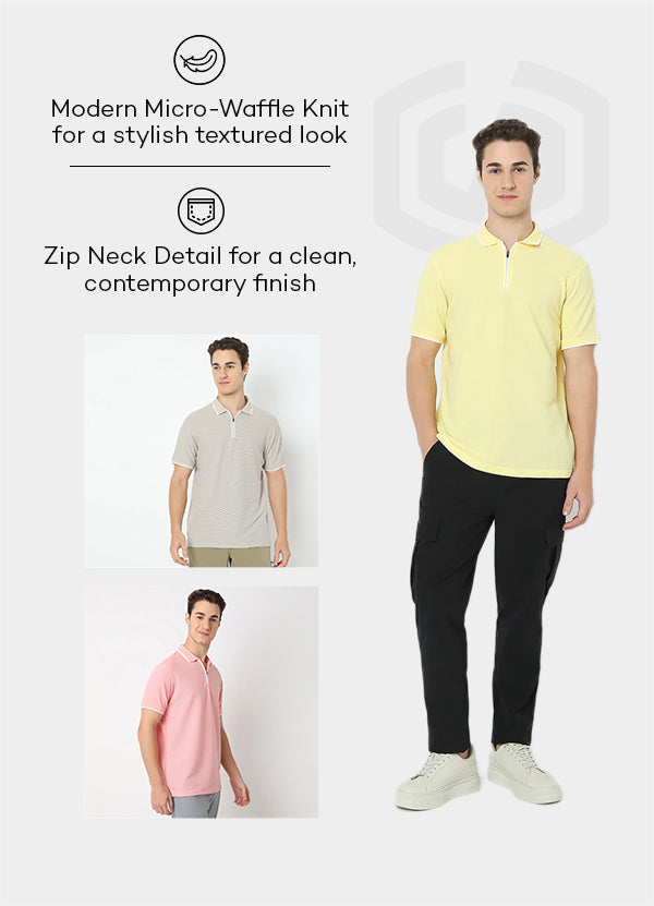Smart Polo™ - Micro Waffle Knit Structure With modern Tipping and Zip Neck **Best Seller**