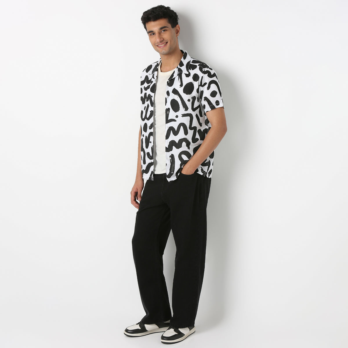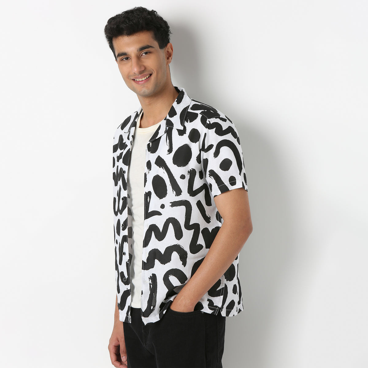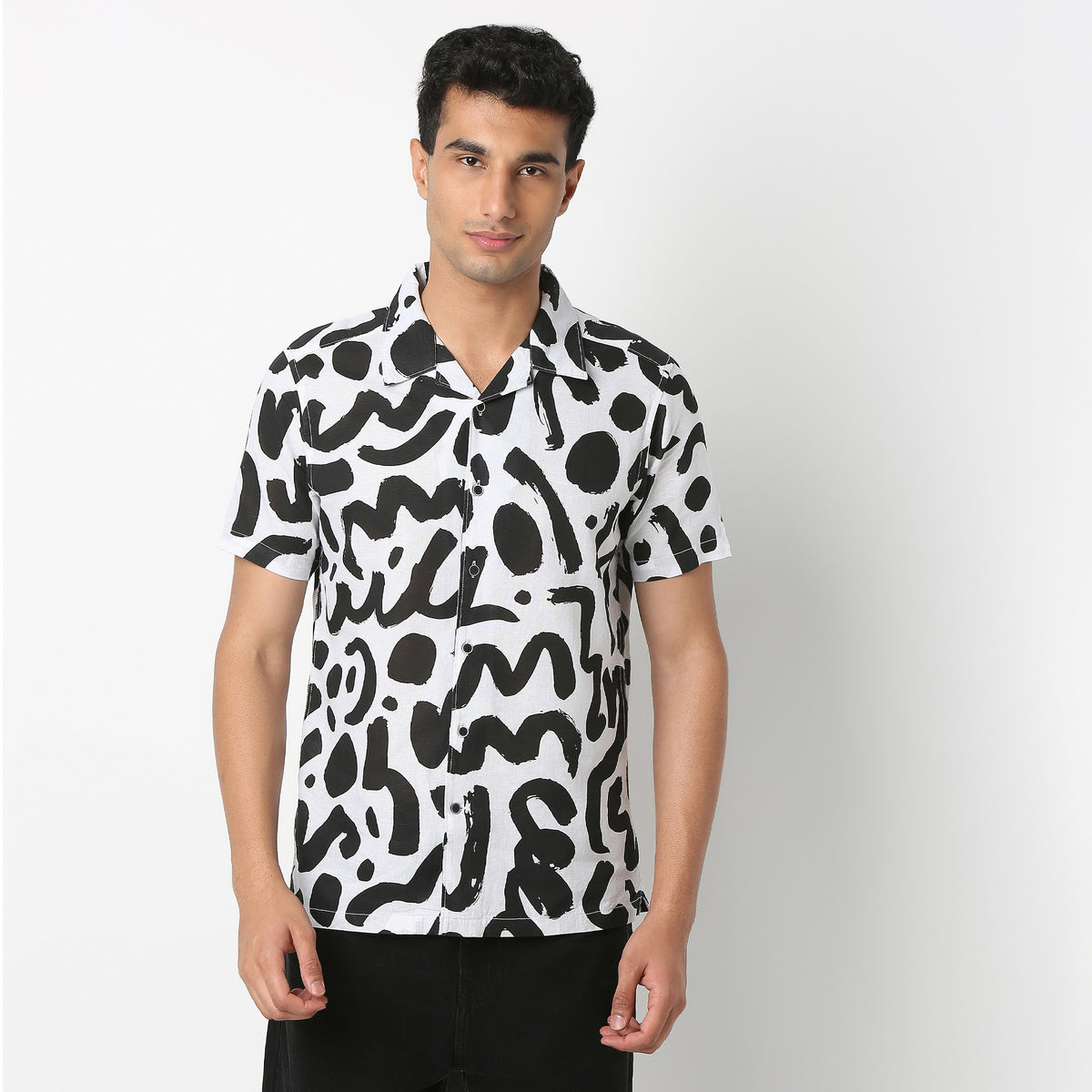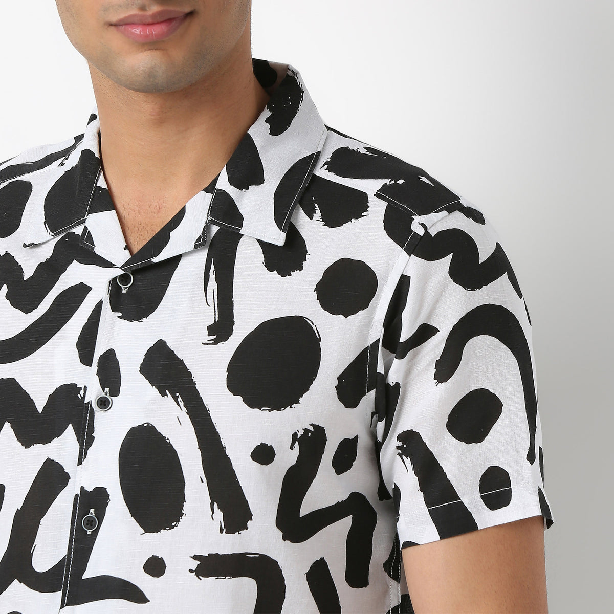 Step into laid-back style with this printed half-sleeve casual Shirt, crafted from a fine blend Natural Fibers Linen and Cotton for an airy, breathable feel.
