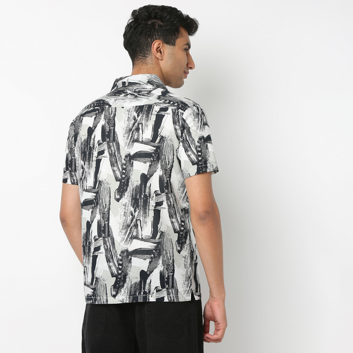 Step into laid-back style with this printed half-sleeve casual Shirt, crafted from a fine blend Natural Fibers Linen and Cotton for an airy, breathable feel.