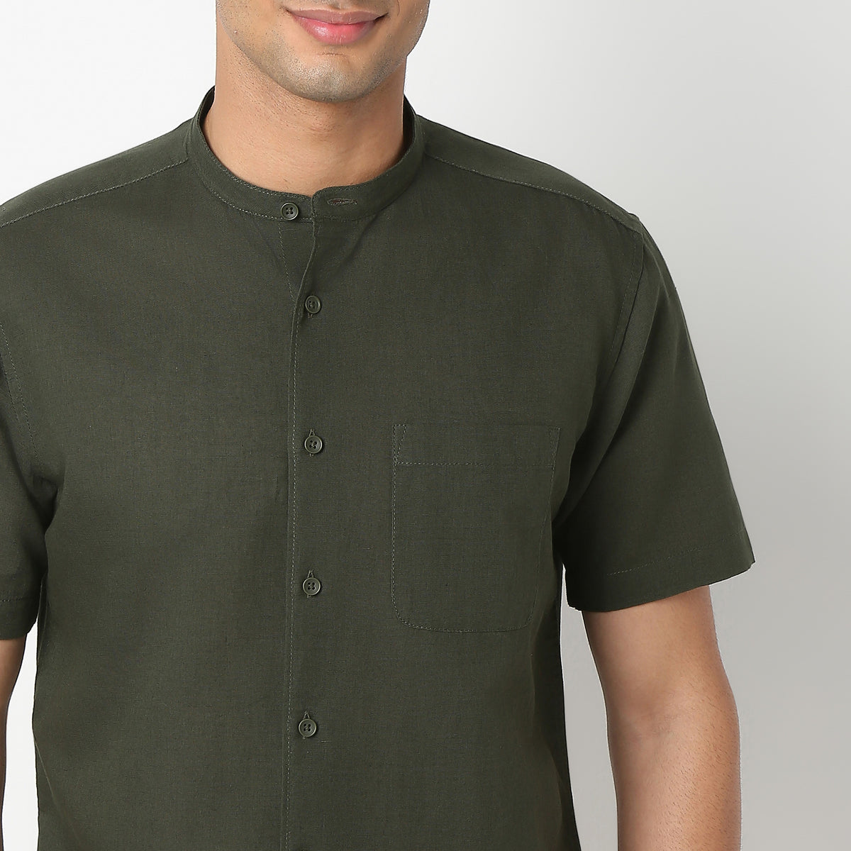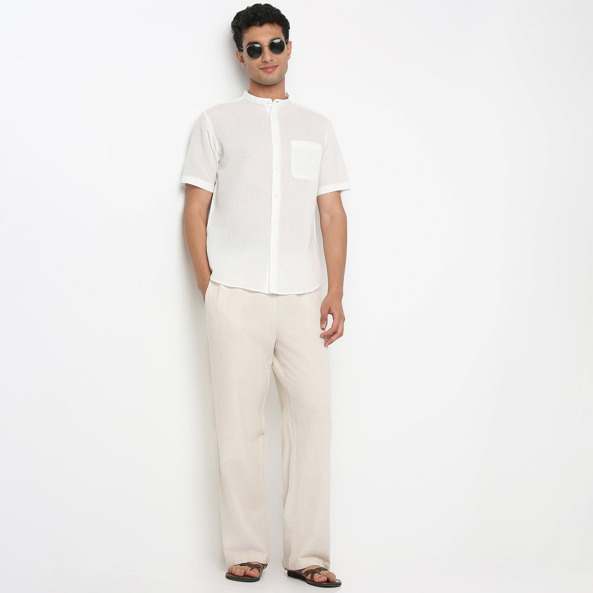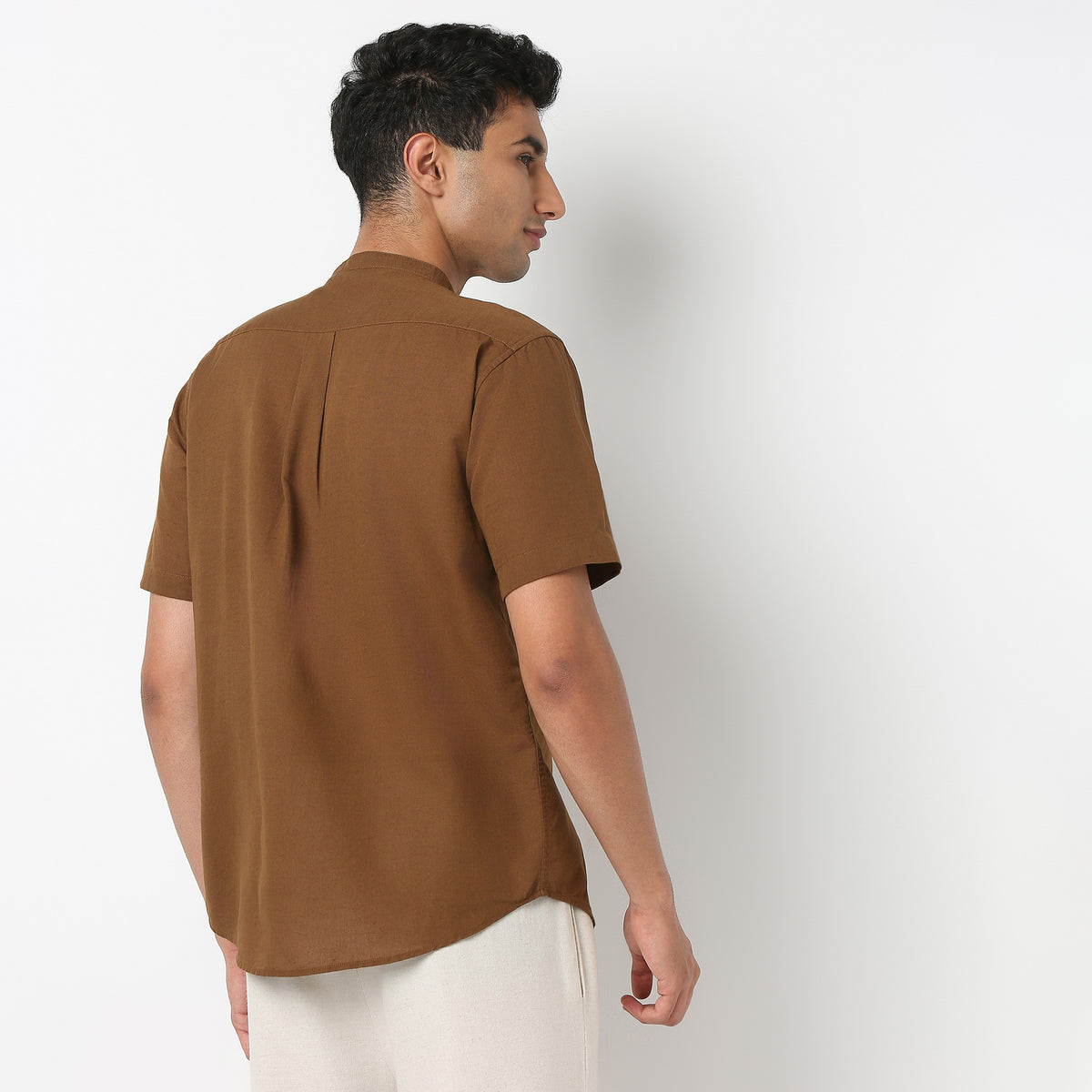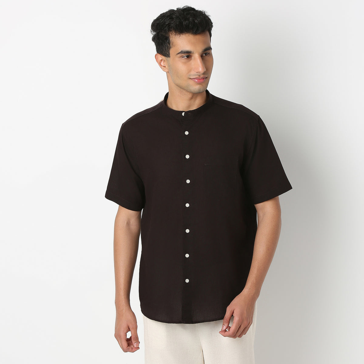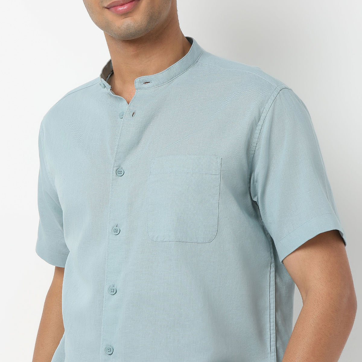 Keep it cool and classic with this Linen Enriched Half Sleeve Casual Shirt, tailored from a fine blend natural fibers of Linen and Cotton for an airy, breathable feel. With a band collar and clean, solid design, this shirt brings effortless sophistication to your everyday style.