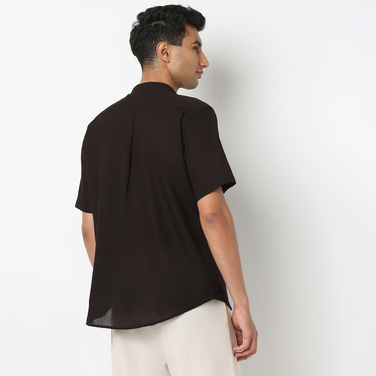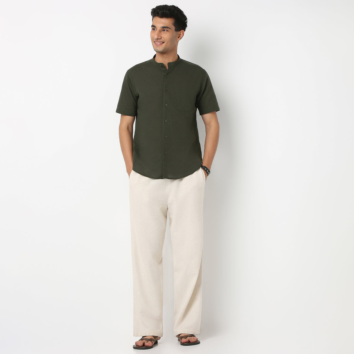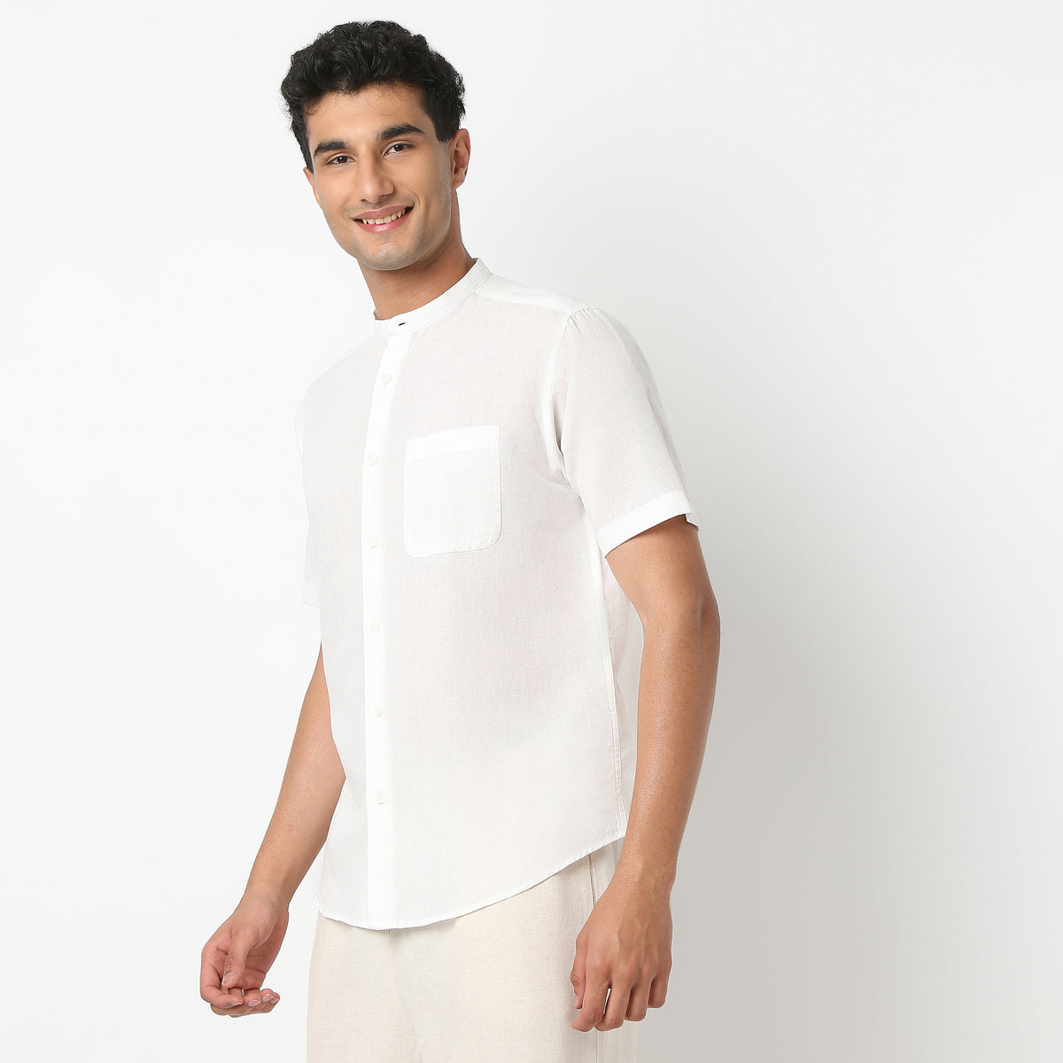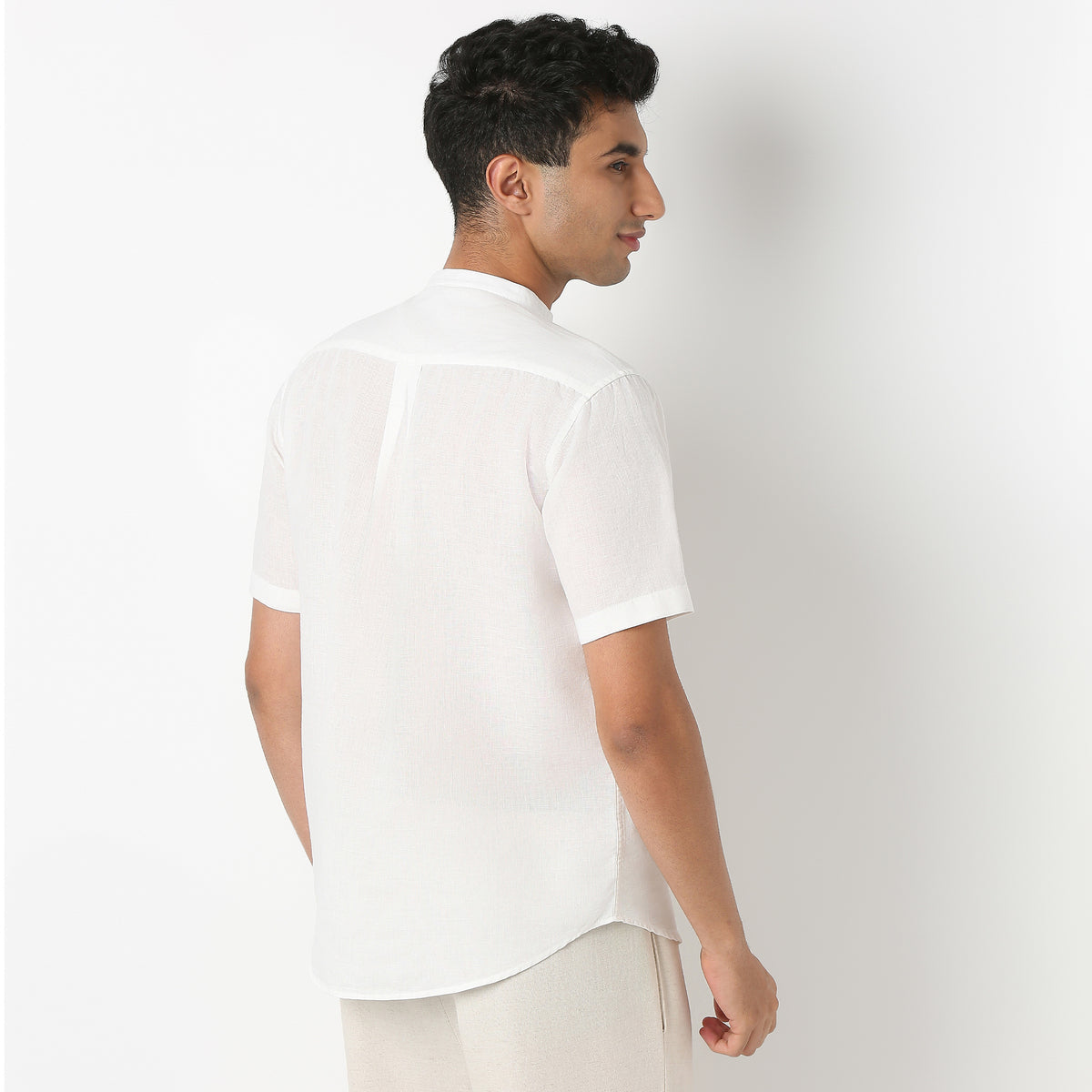 Keep it cool and classic with this Linen Enriched Half Sleeve Casual Shirt, tailored from a fine blend natural fibers of Linen and Cotton for an airy, breathable feel. With a band collar and clean, solid design, this shirt brings effortless sophistication to your everyday style.