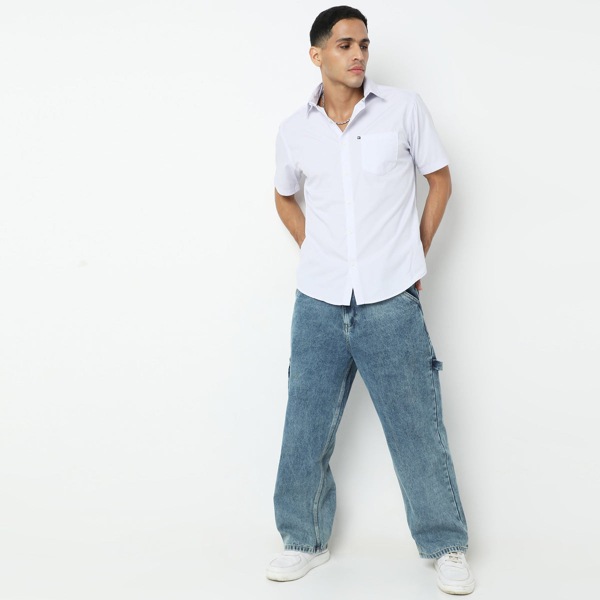 These regular fit shirt has shirt collar, regular length. Made from cotton it is soft and comfortable to wear.
