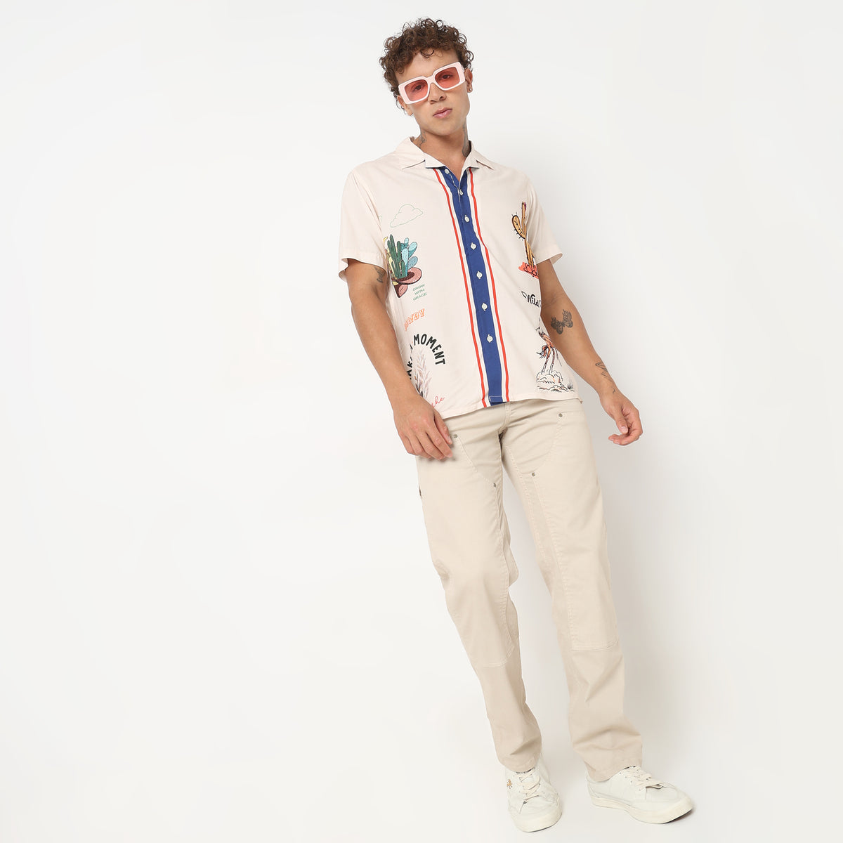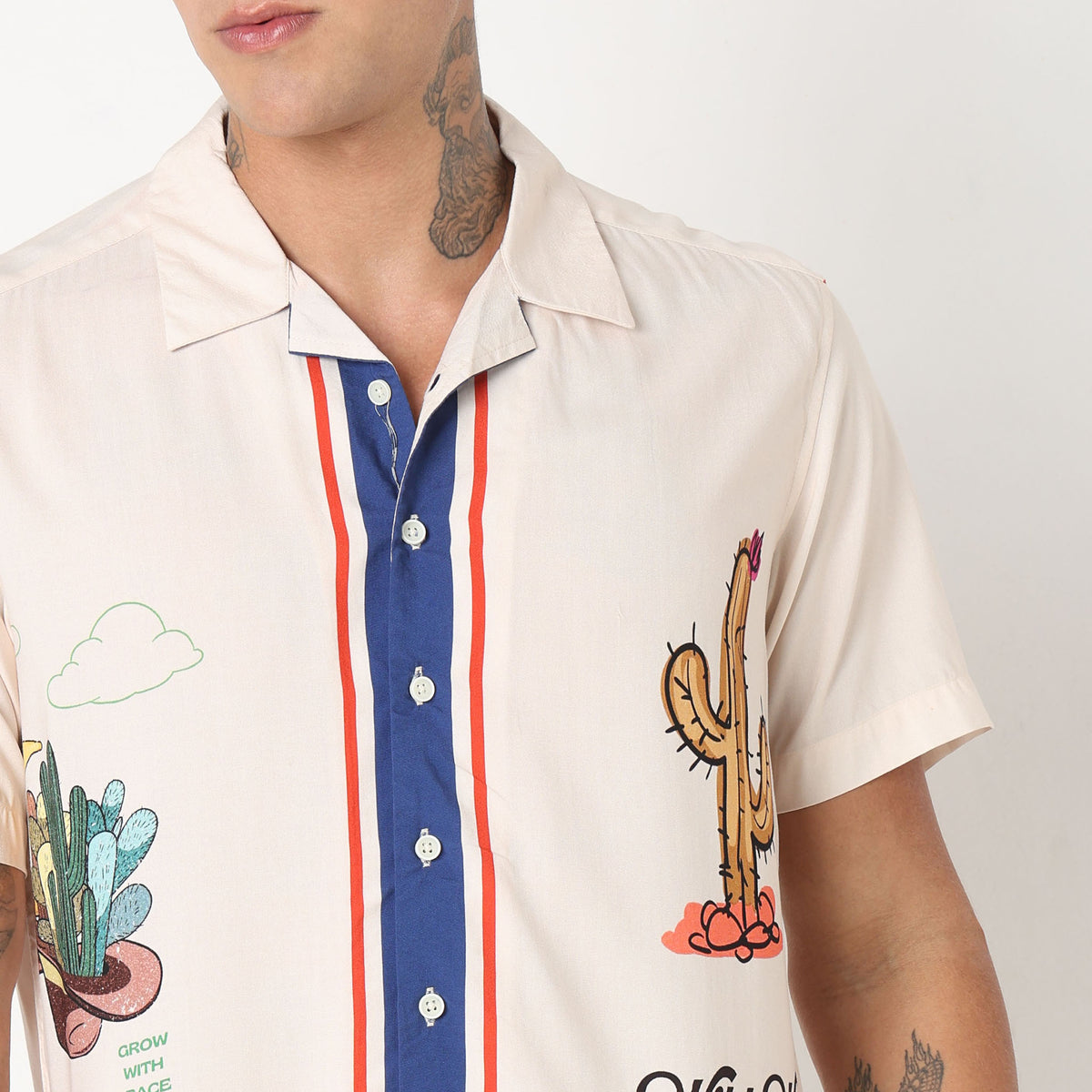 This printed pattern shirt has a camp collar and half sleeve. Made from viscose, it is soft and comfortable to wear.