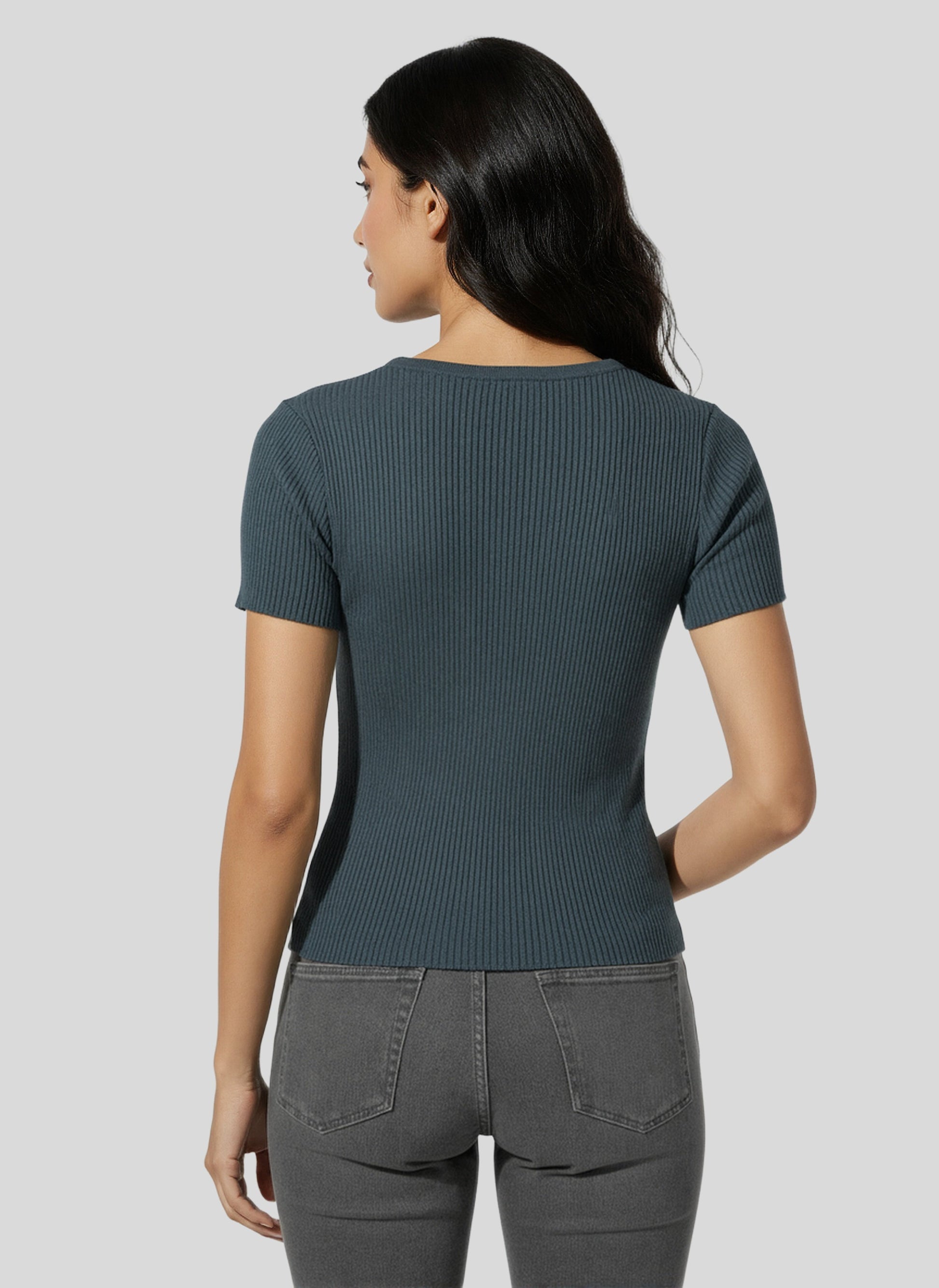 V-Neck Solid Fashion T-Shirt With Side Ruching
