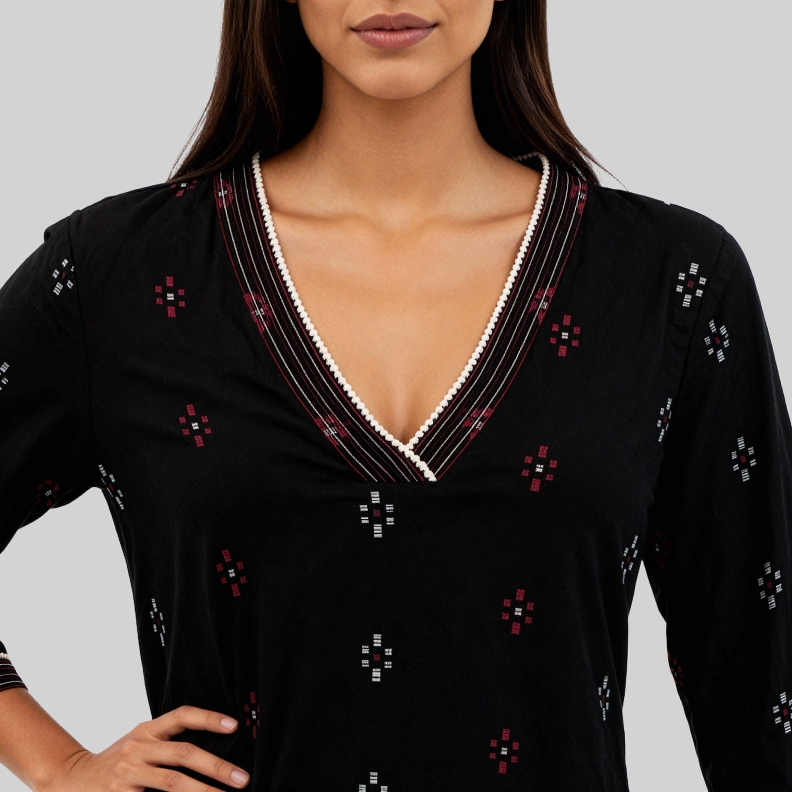 Elevate your wardrobe with the V Neck With Gusset Long Kurta, designed specifically for women who appreciate style and comfort. Crafted from high-quality cotton with a woven texture, this knee-length kurta features a chic printed pattern that adds a touch of elegance to any outfit.