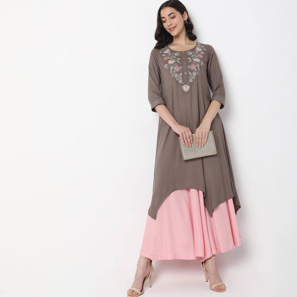 Flare Fit Embroidered Kurta