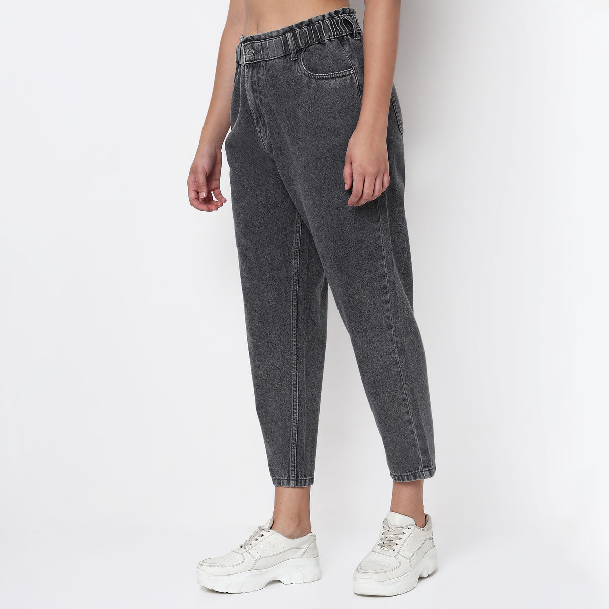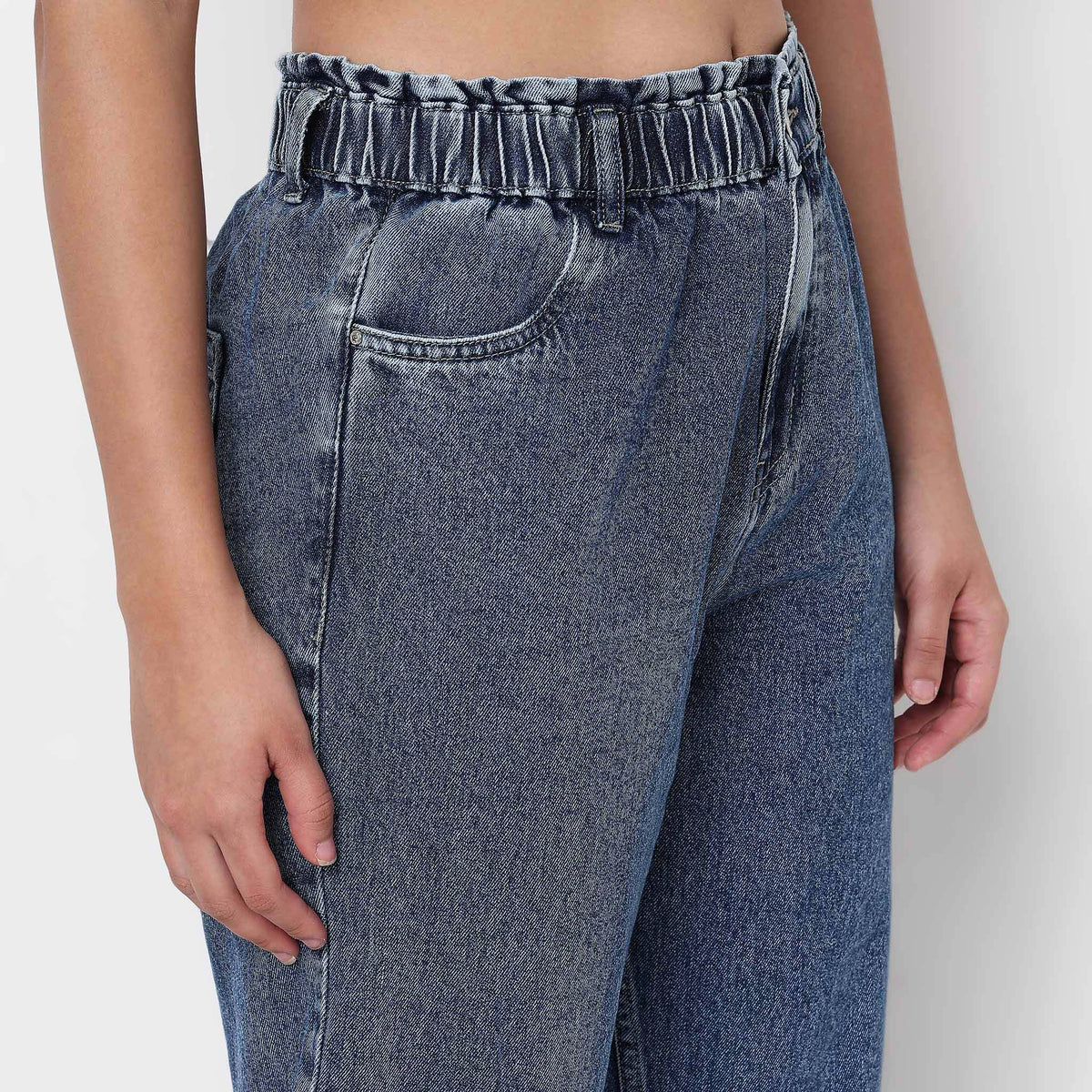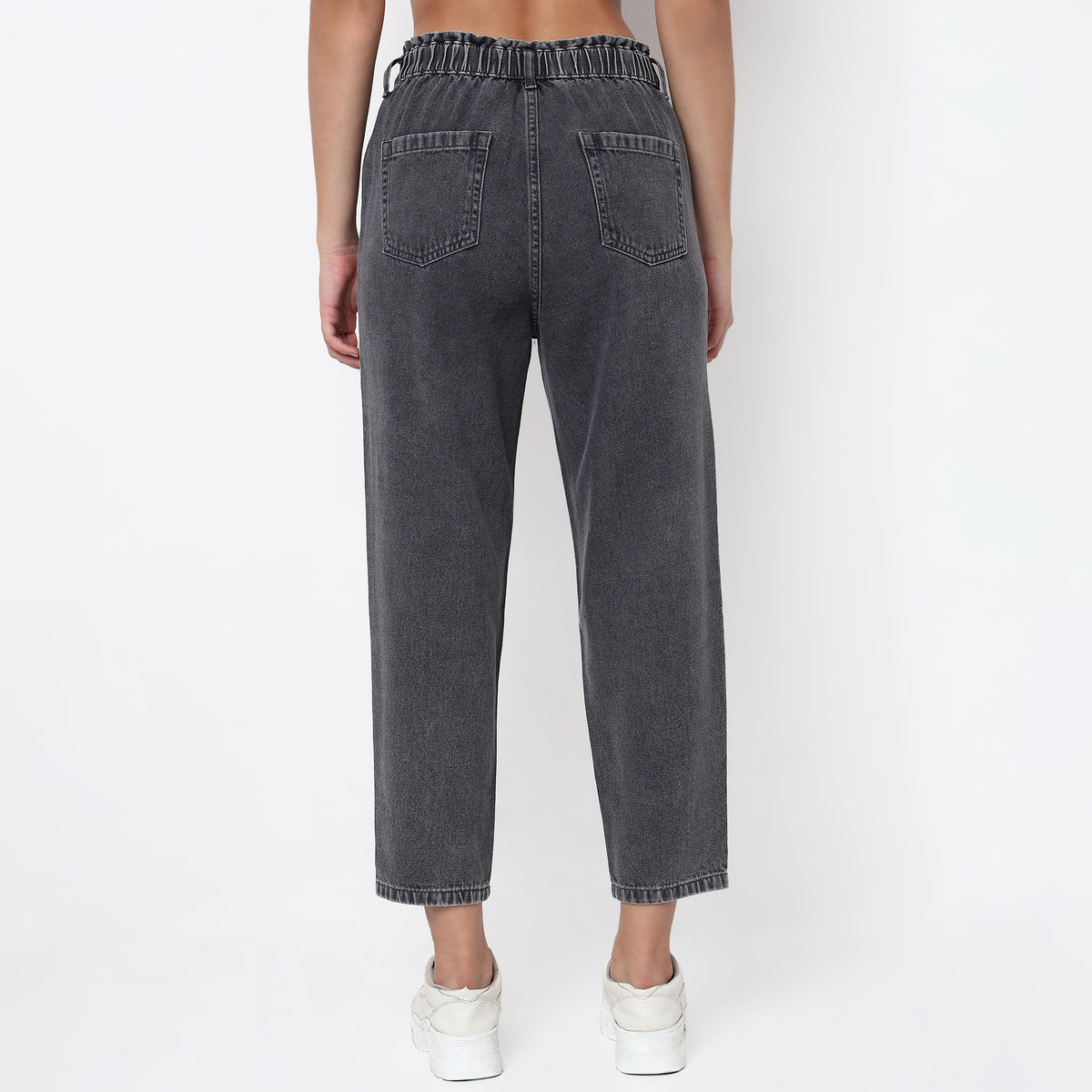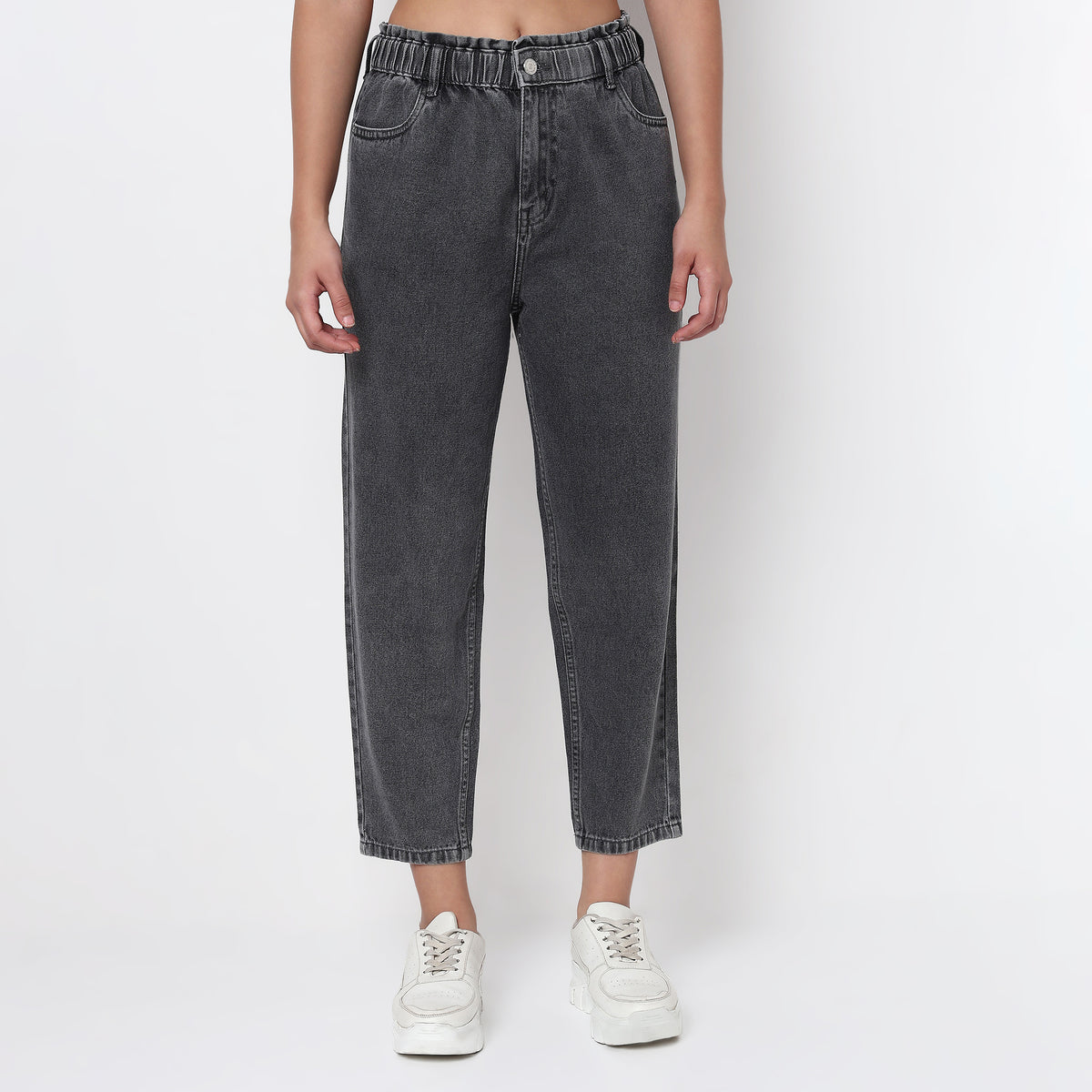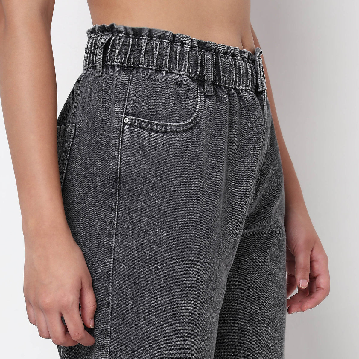 These slouch fit jeans has Cropped length, high rise waist. Made from cotton, it is soft and comfortable to wear.