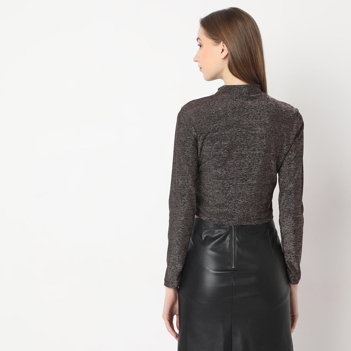 Mock Turtle Neck Full Sleeve Party Crop Top