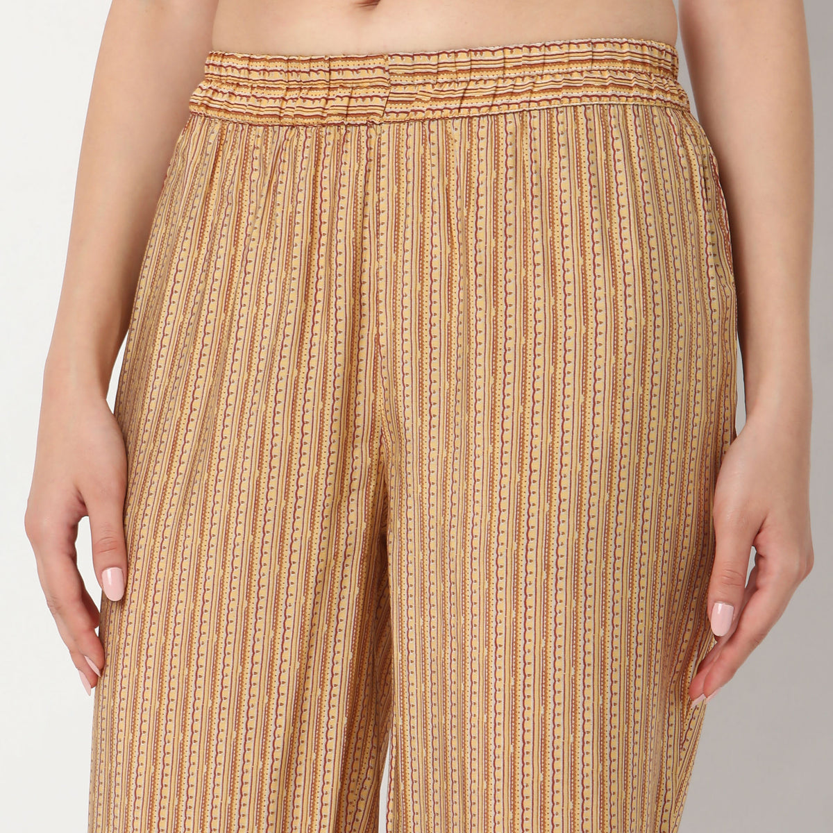 This kurta set has a round neck,three-fourth sleeve and printed detail. Made from viscose polyester, it is soft and comfortable to wear.