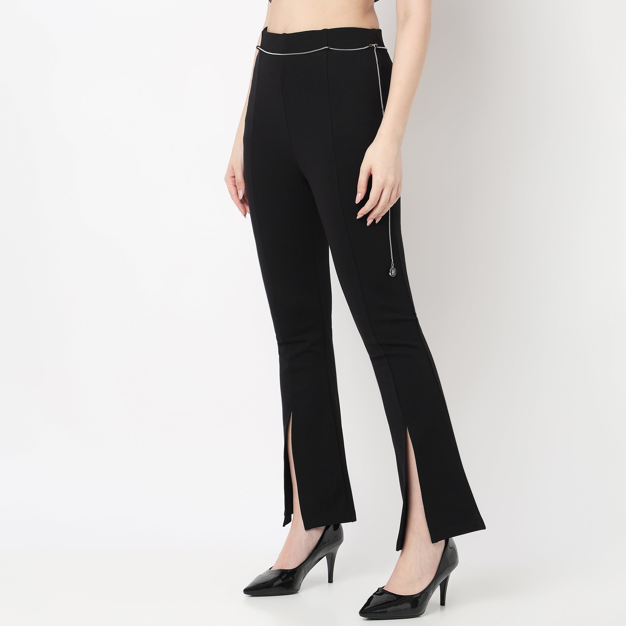 Silver Metail Chain On Waist And Centre Slit At Hem Detail Pant