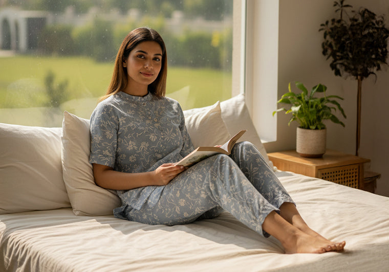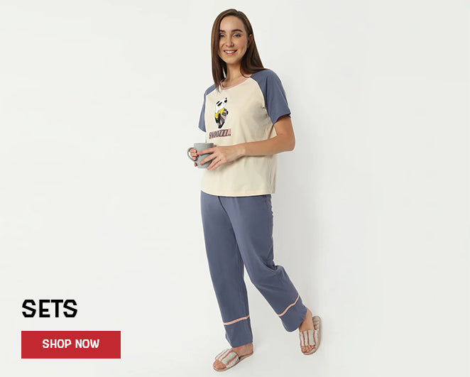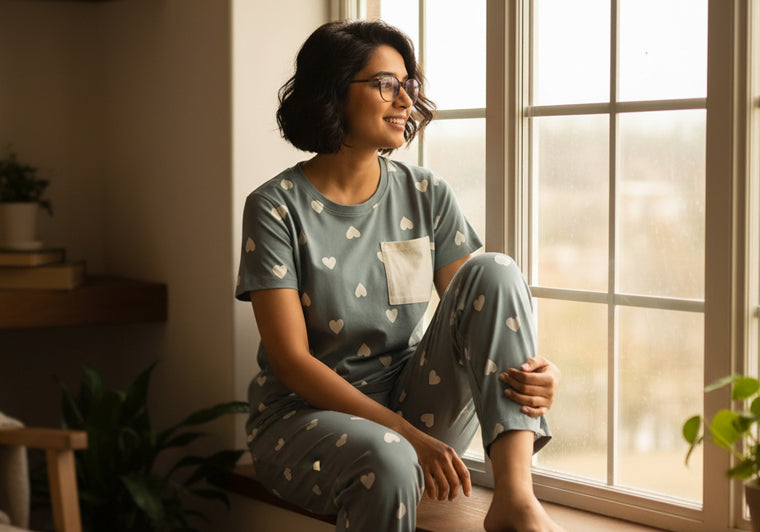 Our women's loungewear sets are designed to keep you comfortable all day long. From breathable cotton co-ords to relaxed tops paired with easy bottoms, every piece is created with your comfort in mind. Lightweight, skin-friendly fabrics make these styles perfect for Indian weather — especially warm and humid days.