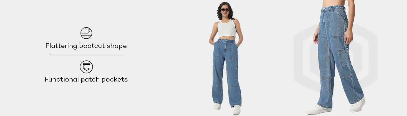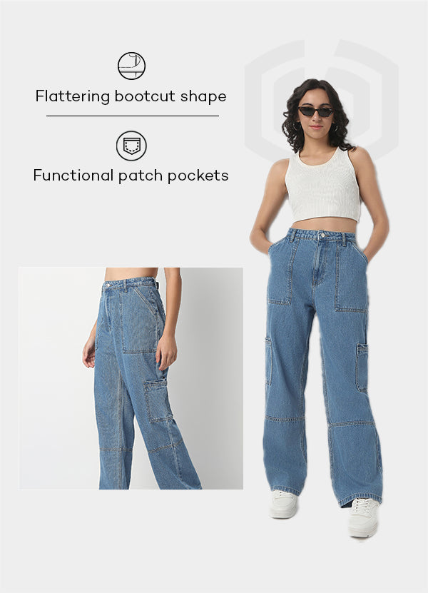 Full Length Boot Cut Solid Highwaist Patch Pocket Cargos
