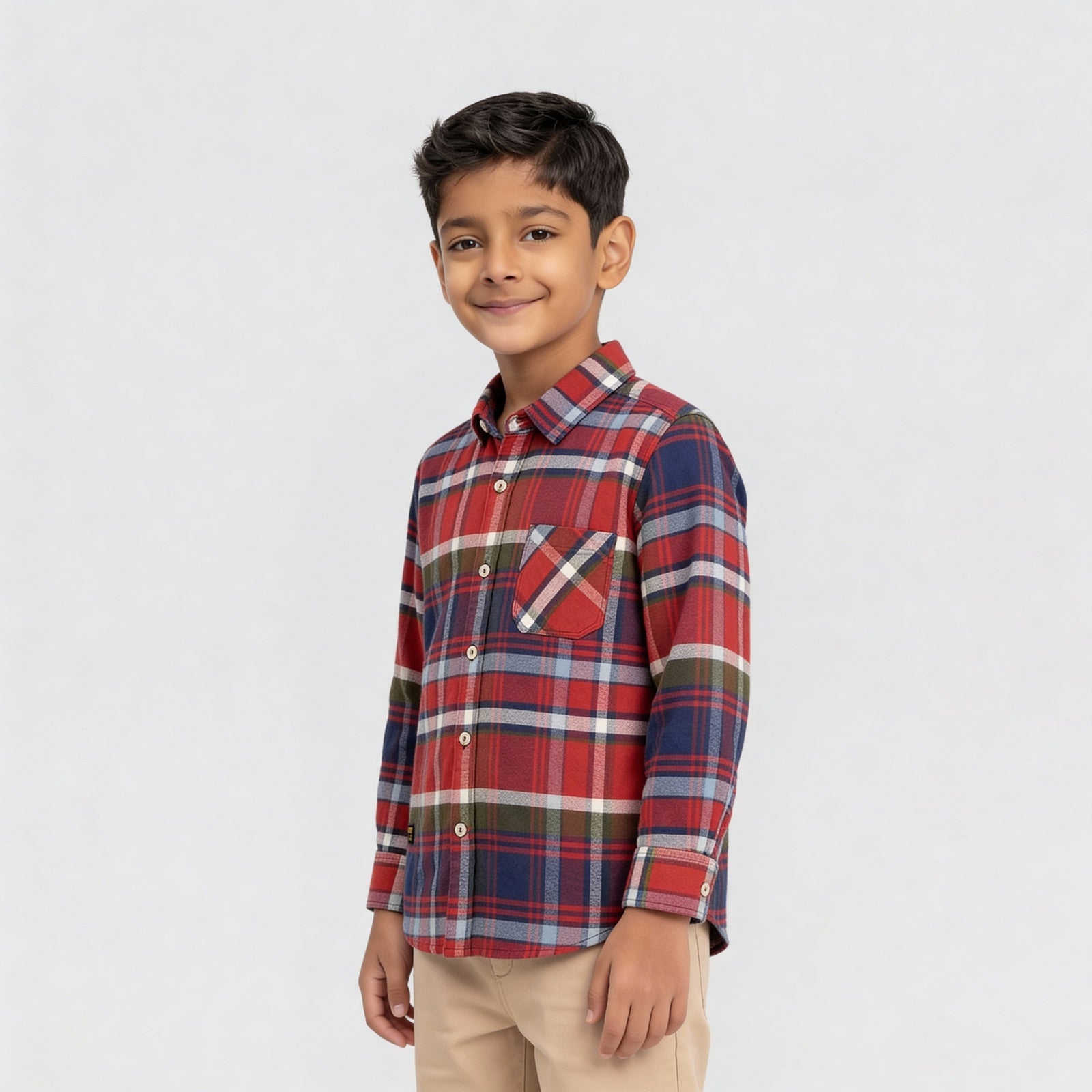 Introducing our Boys' Checkered Shirt, crafted from soft, breathable cotton. This stylish shirt features a classic woven design, perfect for casual outings or special occasions.