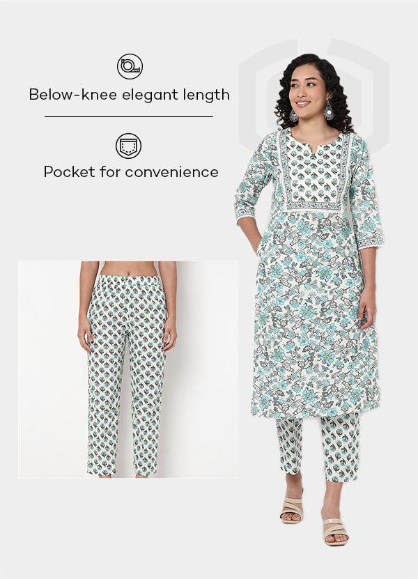 Floral Print Cotton Kurta and Pant with Dupatta Set