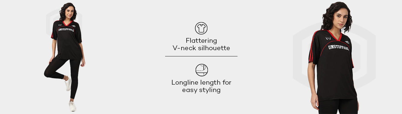Air Dry Graphic Oversized V-Neck Longline T-Shirt