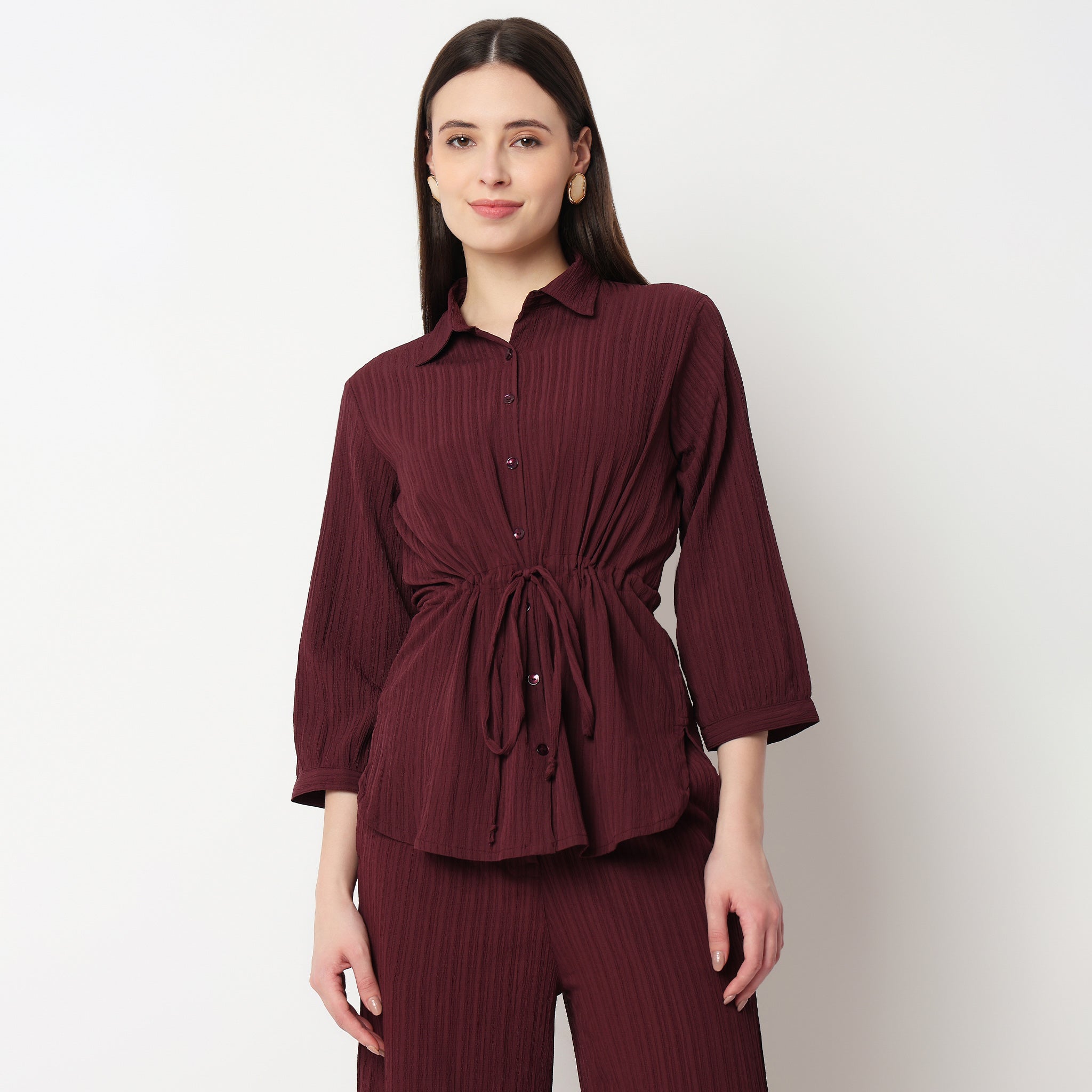 Shirt With Waist Tie Up Through Tunnel